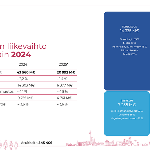 Vuoden 2015 aikana liikennetoimialan liikevaihdon kehitys oli Pirkanmaalla laskusuhdanteista, ja sitä kertyi 0,2 %. Vuoden 2016 ensimmäisellä vuosipuoliskolla toimialan liikevaihto kasvoi 2,3 %. Lue lisää »